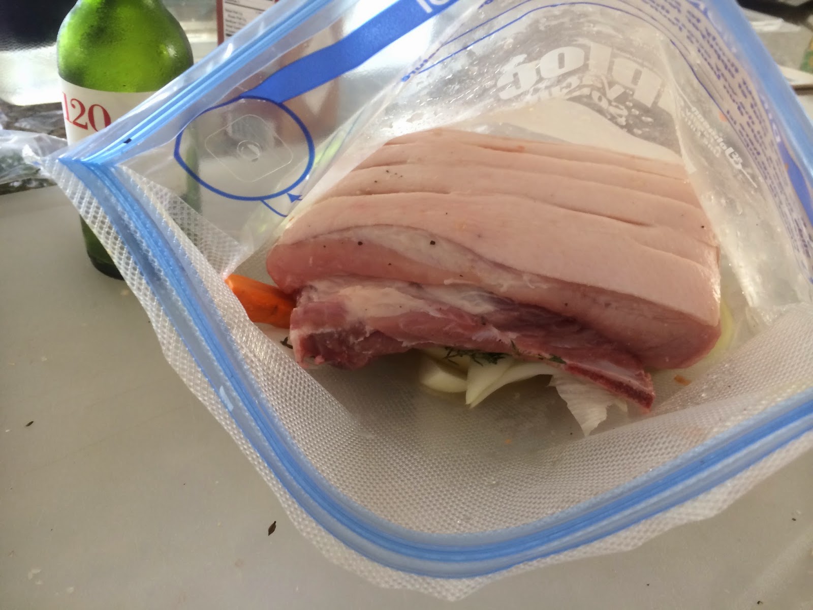 Tasting notes: A little salty, either reduce brine time, or brine concentration. Try leaving out the blanch phase, or even the rest in the fridge.