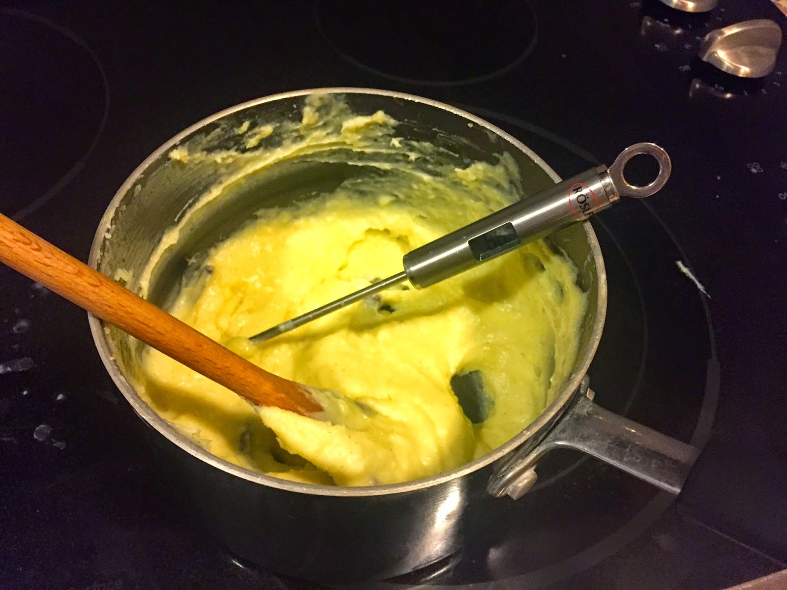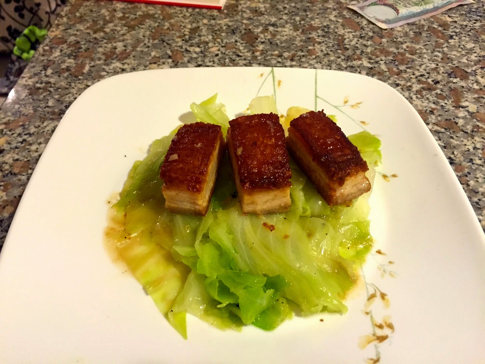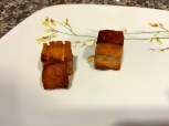 In one method, the skin was removed, and the fat below the skin was cooked face down, and the skin cooked separately. In the second method, the skin was scored and cooked face down. I definitely prefer the skin-on pork. This was done using the sous vide pork, using the conventionally cooked pork, removing the skin would perhaps be a better option as the skin tends to be tougher.