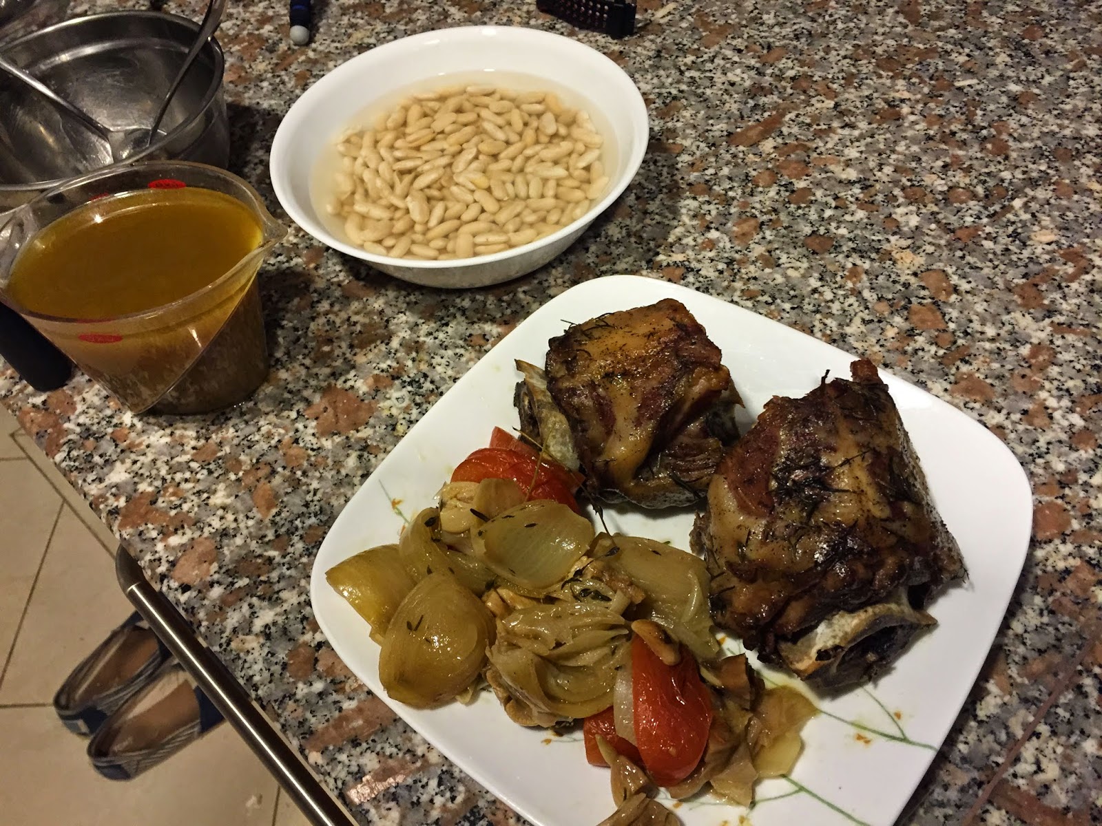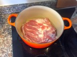 The brine aims to add flavor as well as introduce moisture into the pork. I used a five percent salt brine solution, with about one percent sugar, a good squeeze of honey, bay leaves, pepper corns, sweet smoked paprika and most importantly – star anise. The latter ingredients were ground up in the mortar and pestle then boiled on the stove for a few moments to fully dissolve the solids.