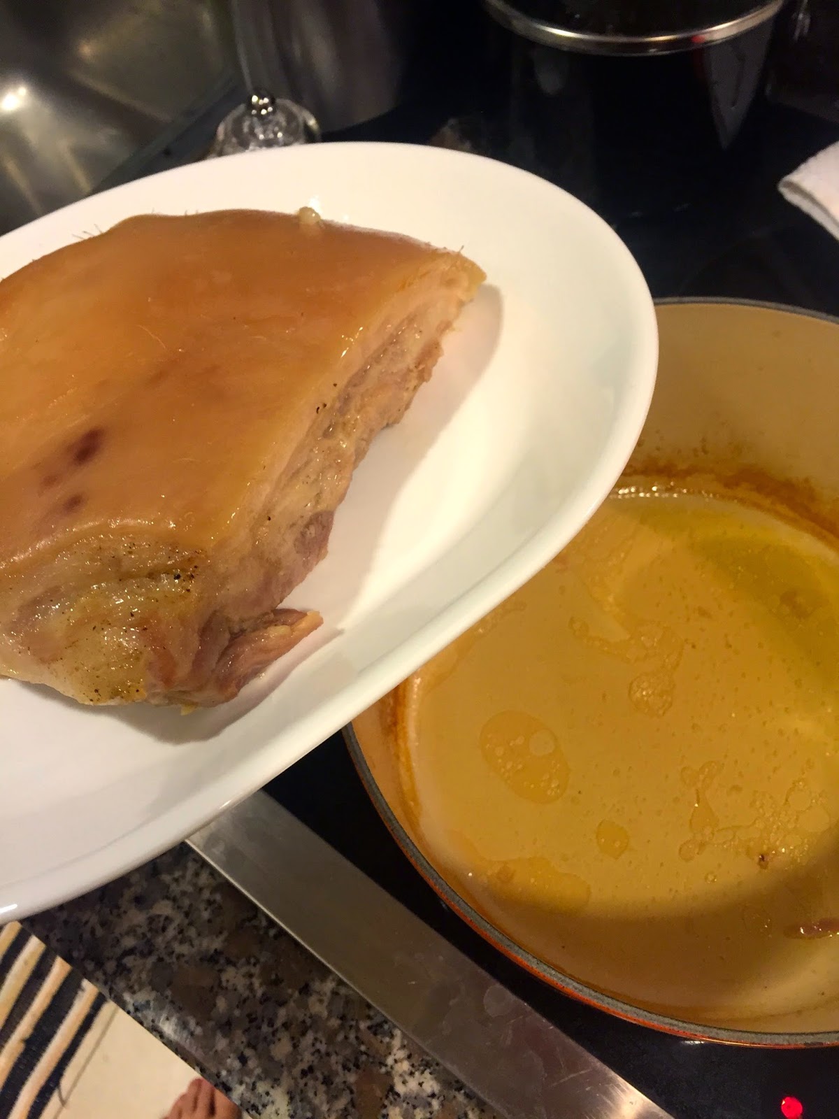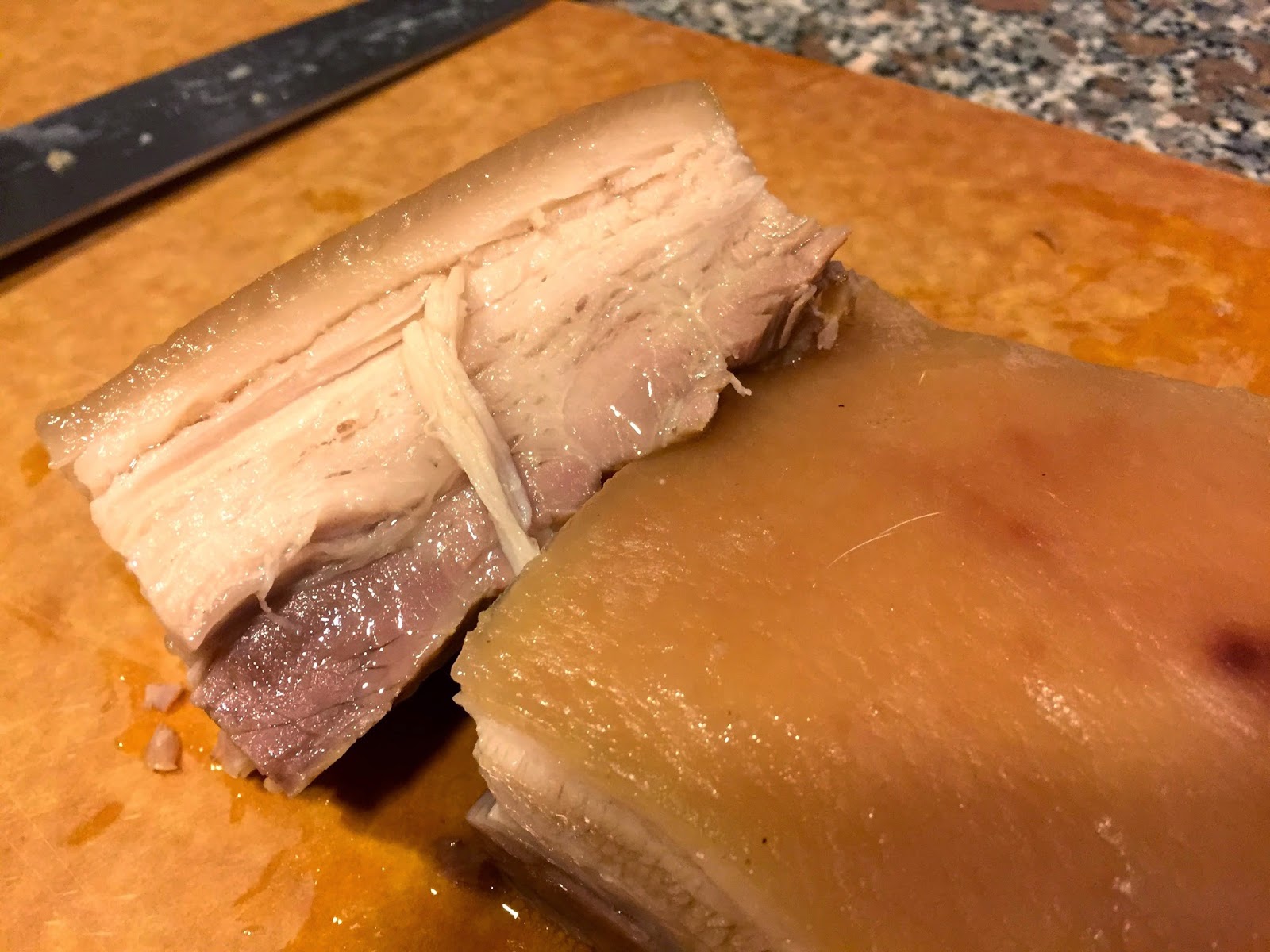 The pork was fairy juicy, and quite tender. The skin has a little tougher than I would have liked. The pork was perfectly salted from the brine, and the flavor (and smell) from the star-anise brine was clearly visible. We still need to go one step further for a comparison to sous vide.